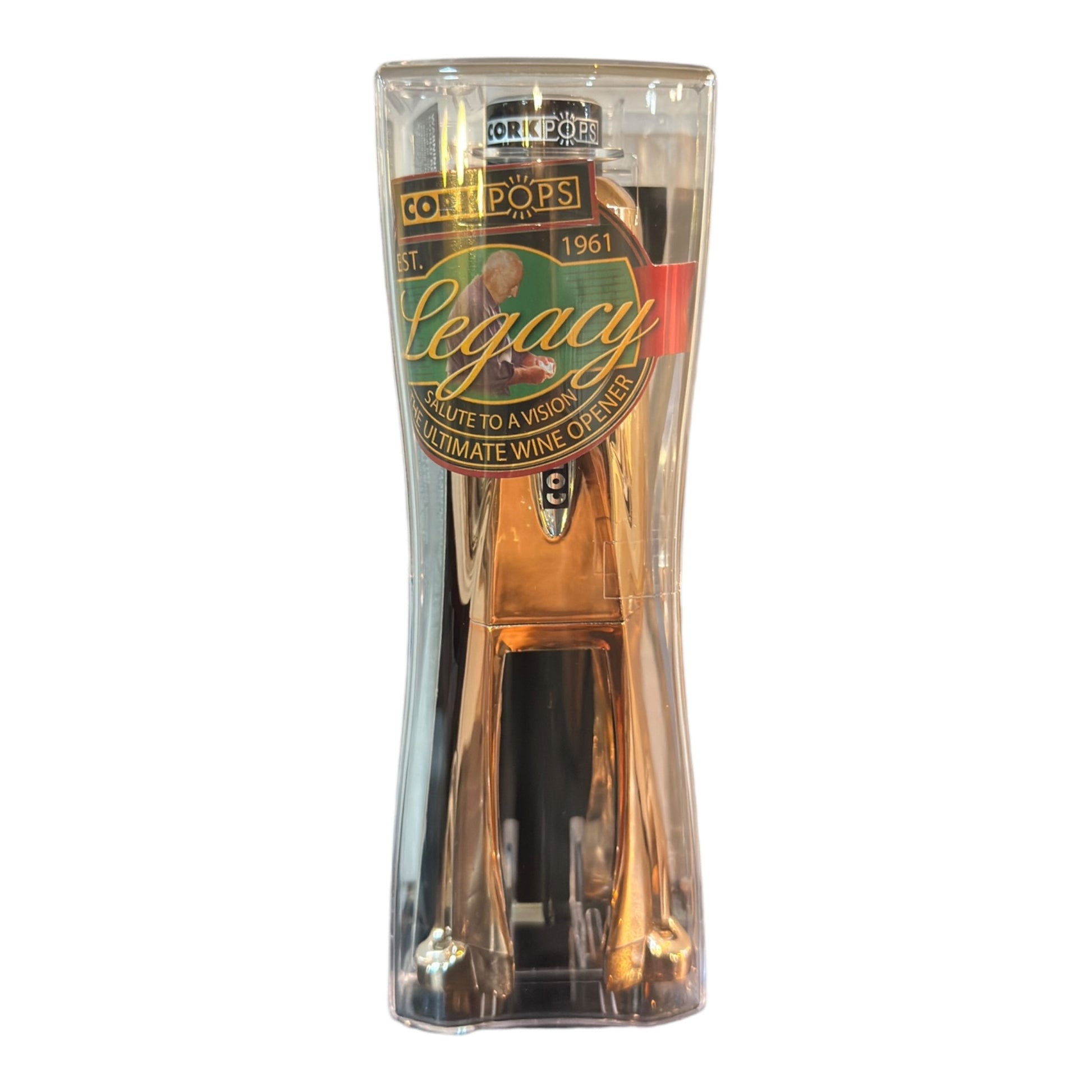 What sets the Cork Pops Legacy apart? It offers a unique single-step motion for effortless cork removal, complete with an enhanced foil removal system and a patented cork ejector.